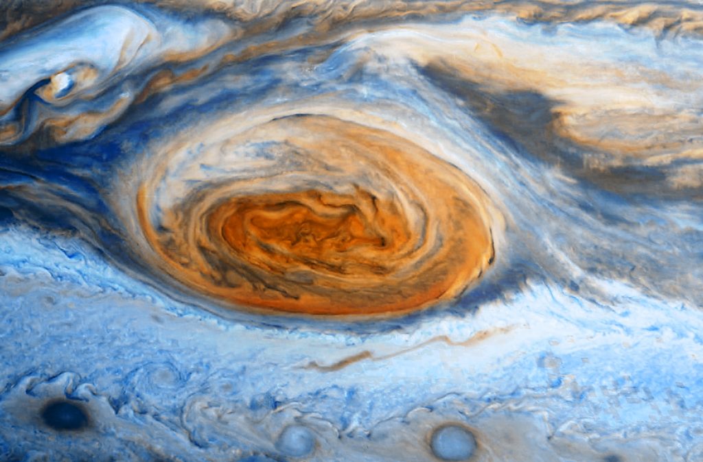 La composition de Jupiter est similaire à celle du Soleil, principalement de l’hydrogène et de l’hélium. Elle n’est cependant pas devenue suffisamment massive pour s’enflammer lors de la formation du système solaire.Jupiter est non seulement la plus grande et la plus massive des planètes du système solaire mais elle est aussi à elle seule plus massive que toutes les autres planètes réunies.